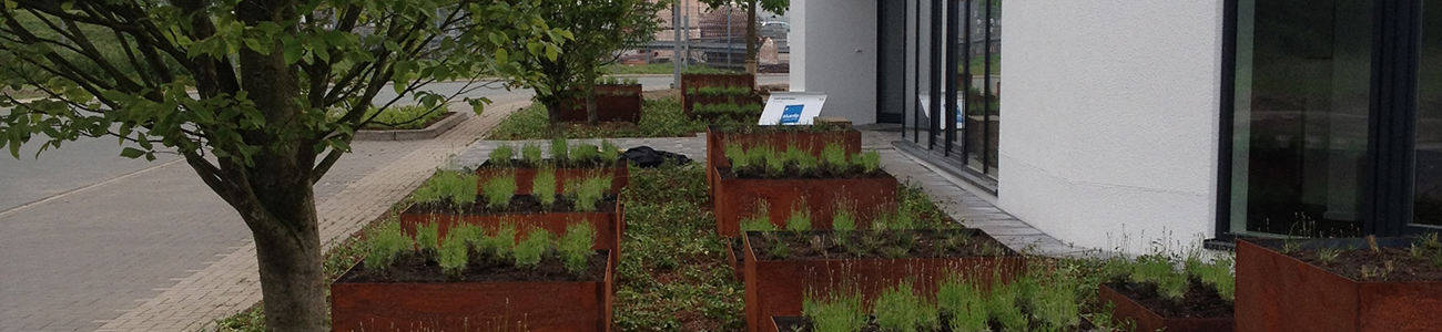 - einzelne Gestaltungselemente, z.B. Hochbeete, Wasserelemente, prägende Gehölze